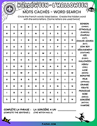 Learning French is not scary. It can even be ghoulishly fun! Word searches and coloring makes it easy to connect the words. Click the image to download the pdf version.